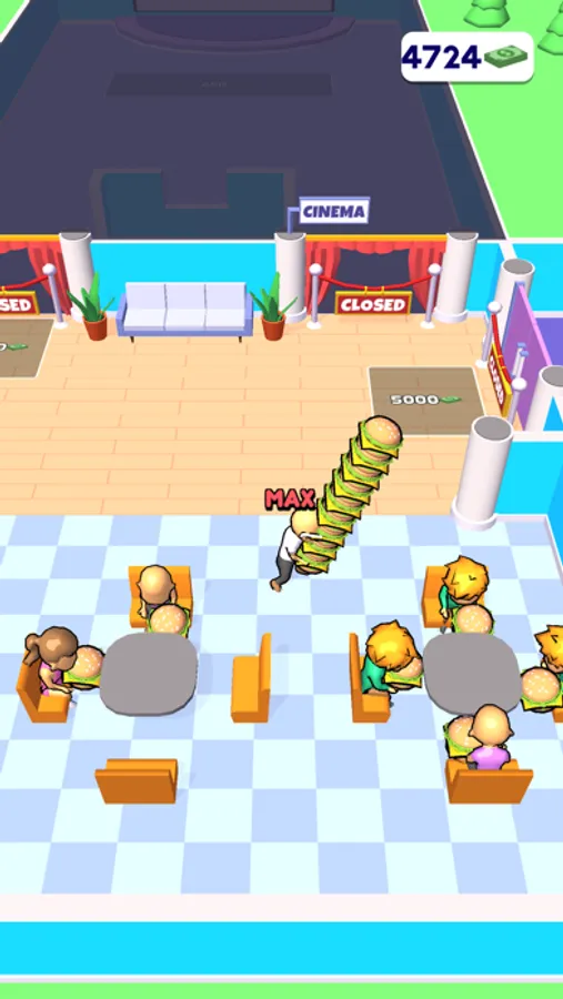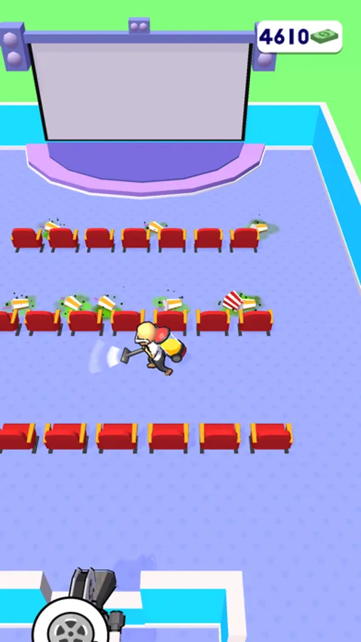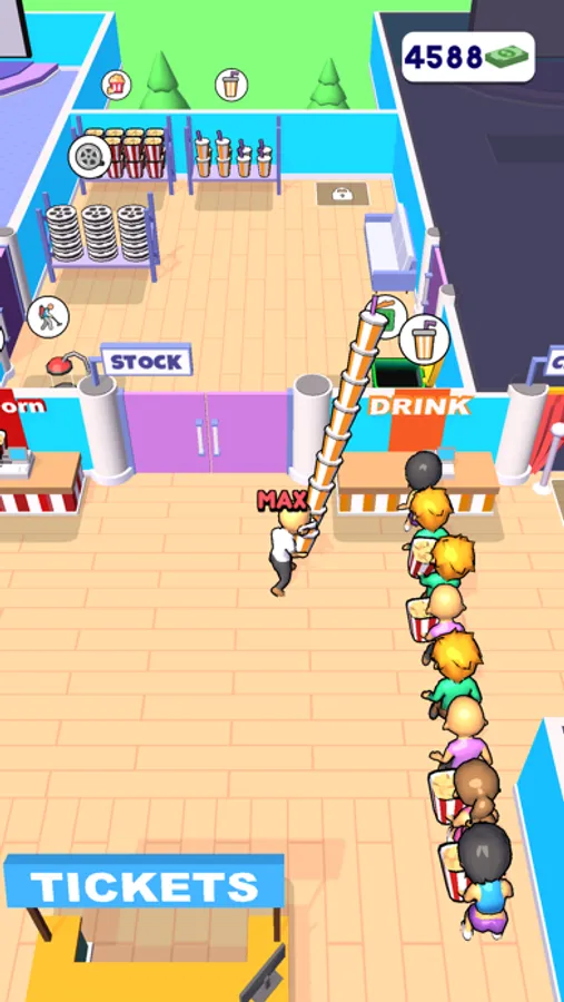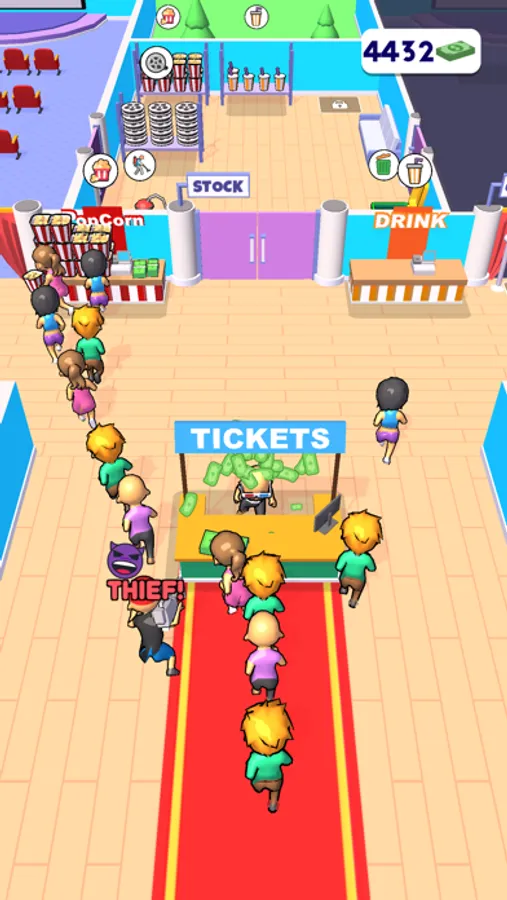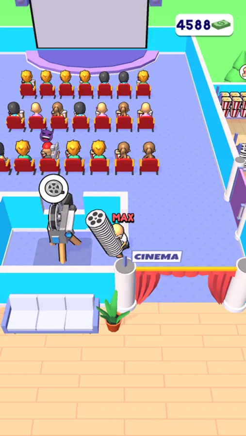 Manage movie screenings, sell popcorn and drinks, and keep things clean.