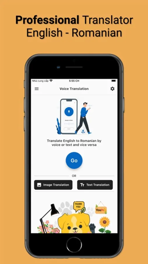 English to Romanian Application is a voice, text and image translation application from English to Romanian or Romanian to English, very convenient and easy to use, useful for users.English to Romanian allows you to translate all documents, voice, images with the language is English or Romanian. This application is a product of YouPro.
