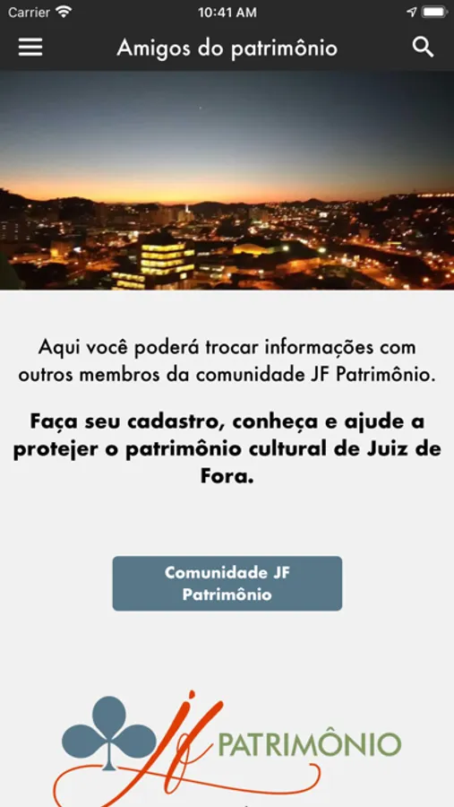 Cadastre-se no aplicativo e interaja com outros membros da comunidade JF Patrimônio.