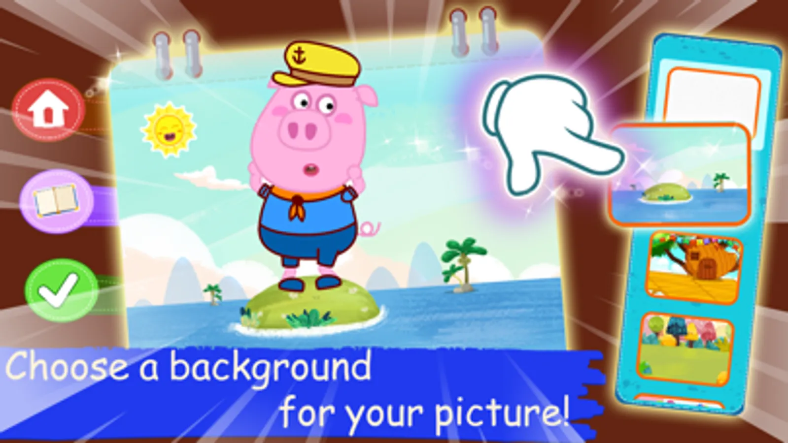 - Choose a background for your colored character between various themes picked from the Wolfoo movie series.