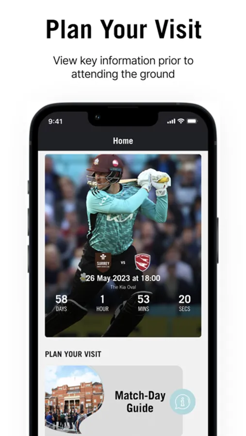 The Kia Oval App is your one-stop hub for visiting our world-famous cricket ground. From being able to access and share your tickets, plan your visit with travel and facility information, and keep up to date with all venue and Surrey County Cricket Club news, our App is essential for supporters and visitors: