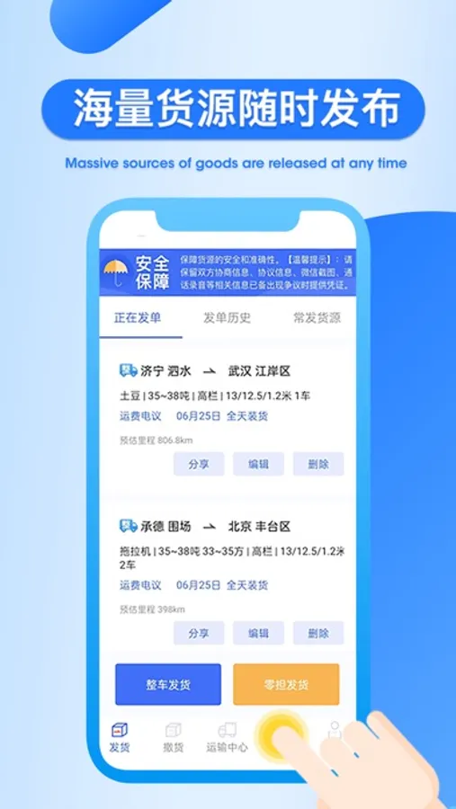 可快速发布货源,接单司机信息和车辆信息真实准确!功能多样:发货找车、撤货、随时查看货车详情、查询订单信息等诸实用功能,能广泛适用各种场合,系统面向服务设计,有良好的可扩展性和适应性。