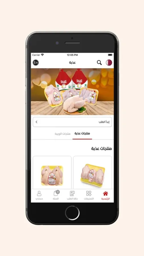 Fresh Athba chicken is essential ingredient for preparing delicious dishes. You can distinguish the high quality of our products by order from our application via following these steps: open the app, click on the category that suits you, and then add what you like to your cart. Finish the order by choosing how to receive it, the preferable payment method and the rest of the required information