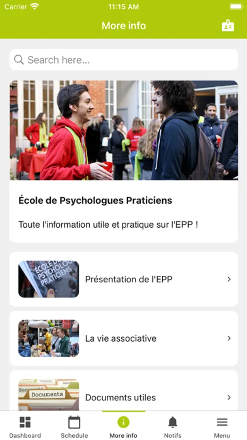 With a few clicks and in real time, find easily your timetable, contacts, informations about school platforms (Pamplemousse, Moodle...) and others practical informations.