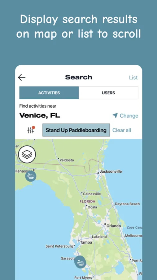 - Search based on activity and location.