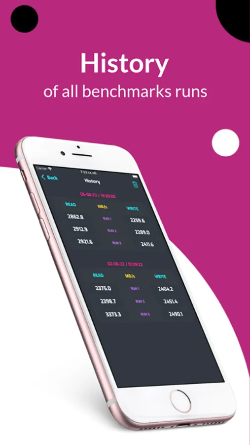 Intelligent disk benchmarking tool to get the most accurate speeds and capabilities of your device SSD.