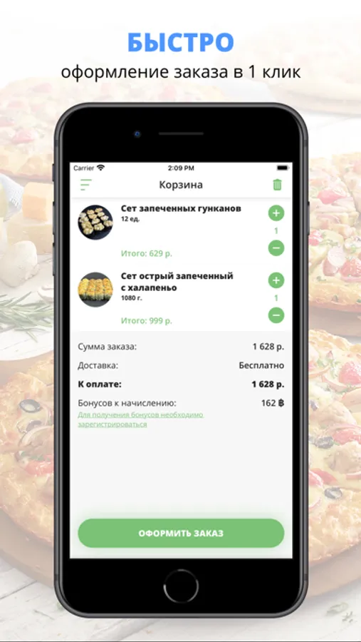 удобная корзина и быстрое оформление заказа,