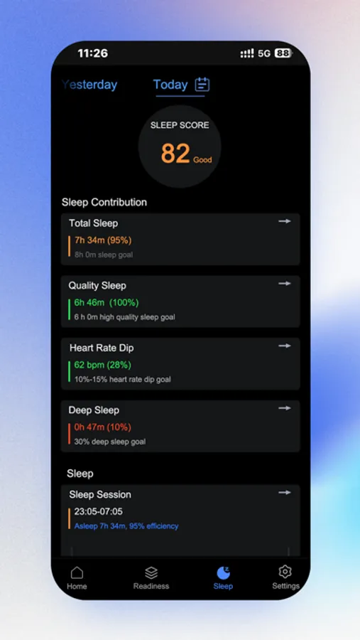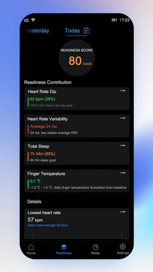 Two daily scores — Sleep and Readiness — give you a clear understanding of the state of your body with actionable guidance on how to stay balanced.