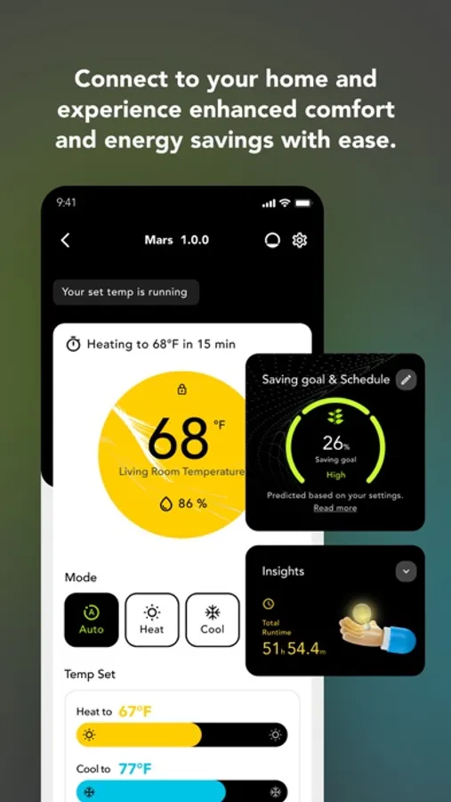 - Change the temperature from anywhere across the globe or the sofa using your smartphone.