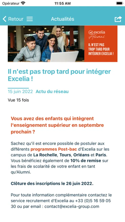 L’application dédiée aux diplômés d’Excelia : Sup de Co - ESC La Rochelle, Poitiers, Tours / ESCEM / ECG Orléans