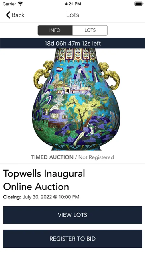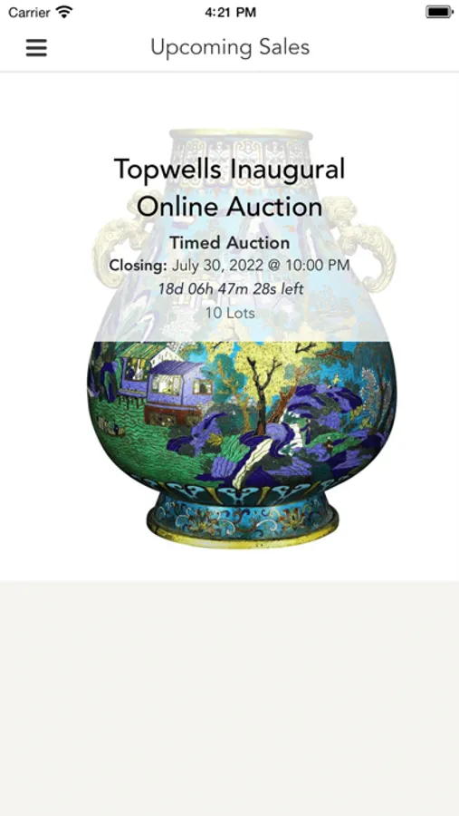 Topwells Auction is a worldwide fine art auction house. Our auctions include: Antiques,Jewelry,Fine Art,Furniture,Decorative Art,Books and Manuscripts,Native American Art,Contemporary Design,Fashion and Asian Art,and more.Taking part in our auctions is now easier than ever with the Topwells app. You can follow your favourite lots, discover upcoming auctions and register with ease- no need for paperwork,You can watch our auctions and bid live or place absentee and online bids from anywhere in the world using your Ios device.