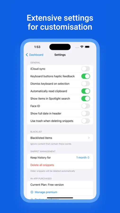 - Blacklisted Words: Ignore specific clips containing blacklisted words, ensuring irrelevant or sensitive content stays out of your clipboard history.