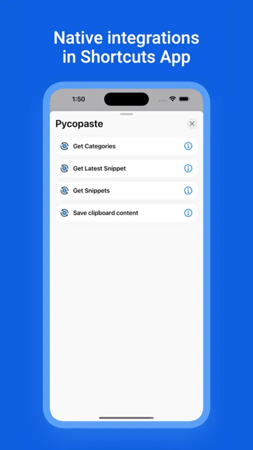 - Access Clips from Shortcuts: Integrate Pycopaste with iOS shortcuts for even faster access to your clips.
