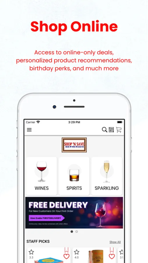 With the App you can browse for the wines & spirits available in the store, and also order a delivery or pickup.
