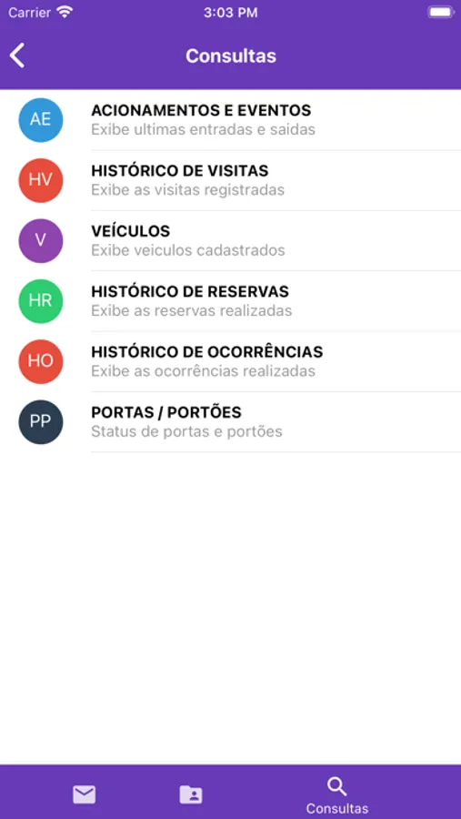 - Consulta de entrada e saída. Ex: Saiba que horas seu filho chegou da escola.