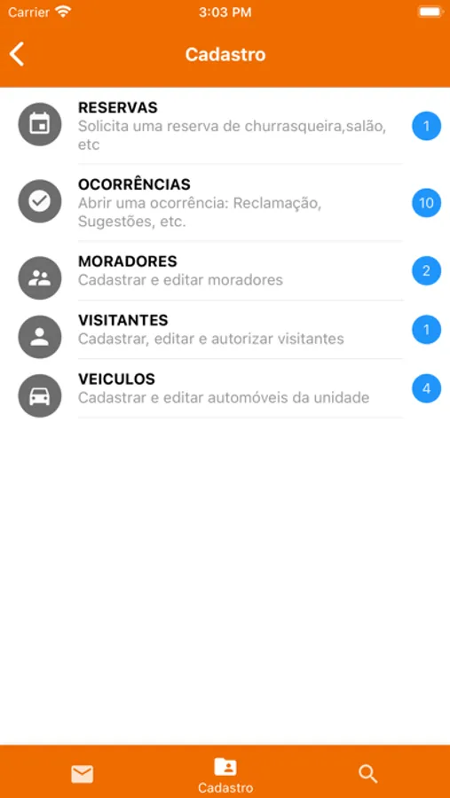 - Reservas de áreas comuns (Churrasqueira, Salão de festa, etc)