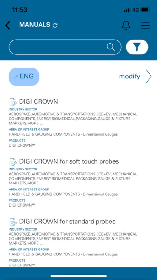 Application which collects all Marposs Group Documentation (catalogues, manuals, presentations) for sales and service support.