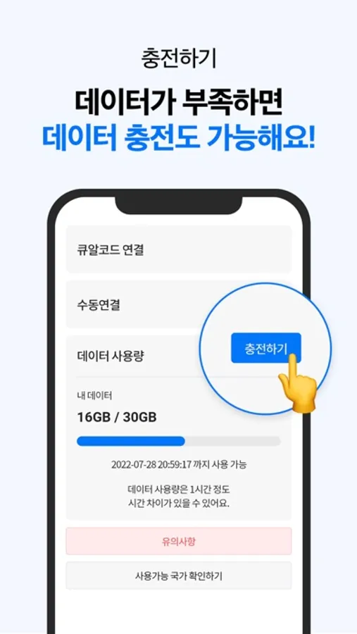 여행자가 이제 굳이 물리적 USIM을 제거하고 장착하지 않고, QR코드 스캔 또는 즉시연결버튼이면 즉시 현지 데이터를 이용할 수 있습니다.