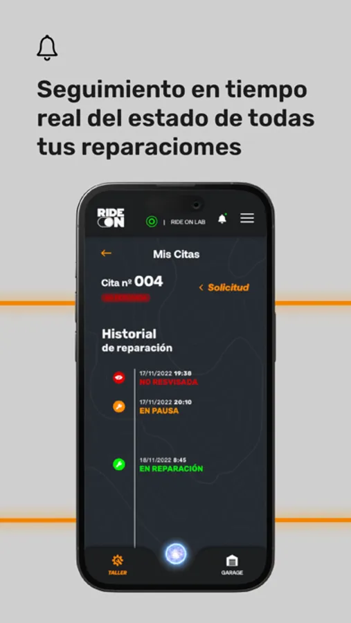 La app RIDE ON es tu soporte digital más avanzado cuando se trata de revisar, mantener y saber sobre tu bicicleta. También te permite conectarte a tu taller de confianza y pedir la reparación desde tu móvil, fácil y sencillo. Desde RIDE ON hemos querido crear la herramienta definitiva para ayudar a los talleres, ciclistas y mecánicos profesionales.