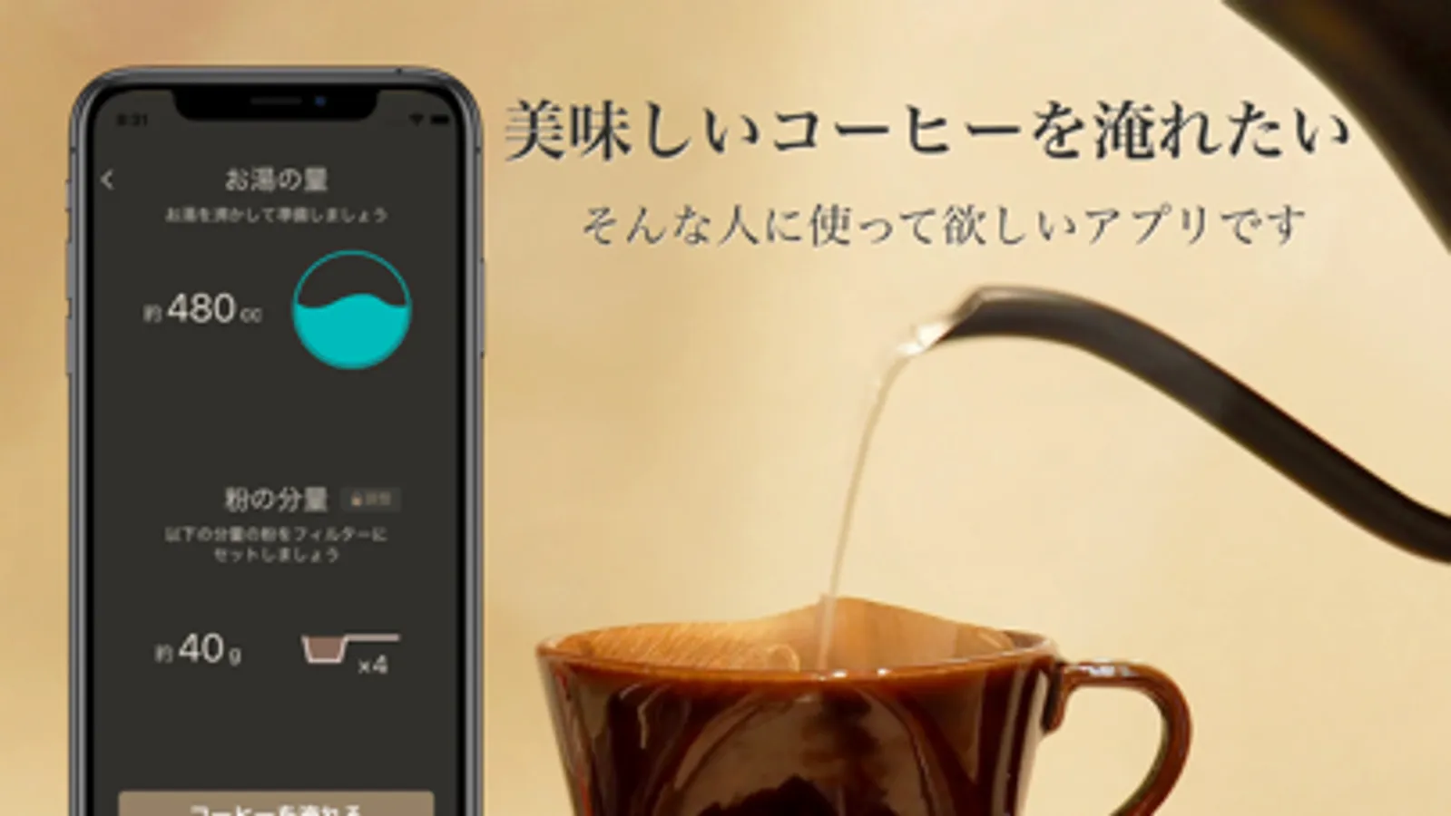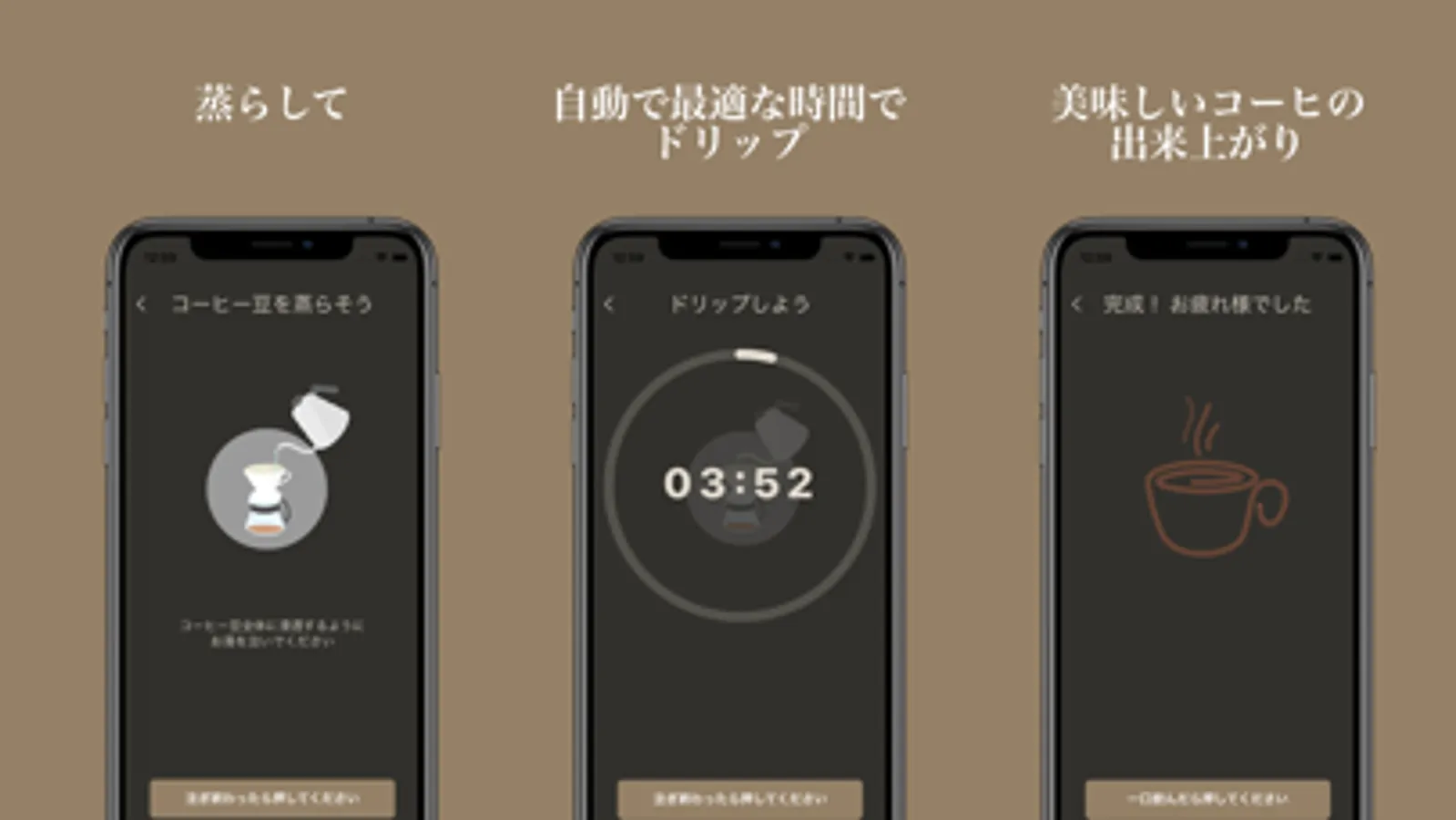 4. アプリに表示されている通りに、蒸らし、ドリップします