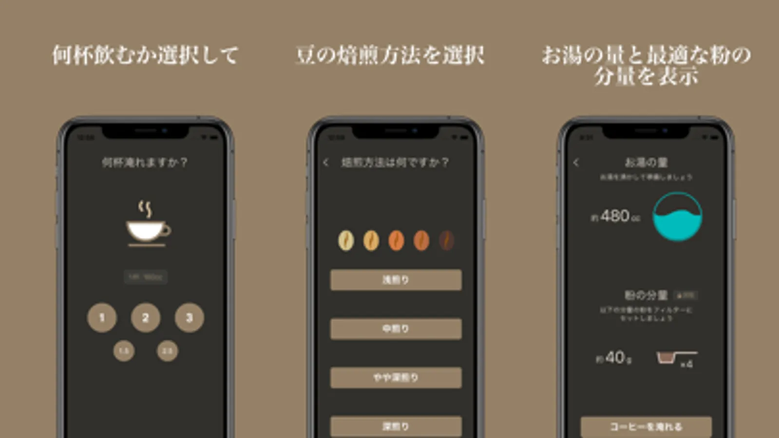 3. アプリに表示される豆の分量をドリッパーにセットし、お湯も合わせて沸かします