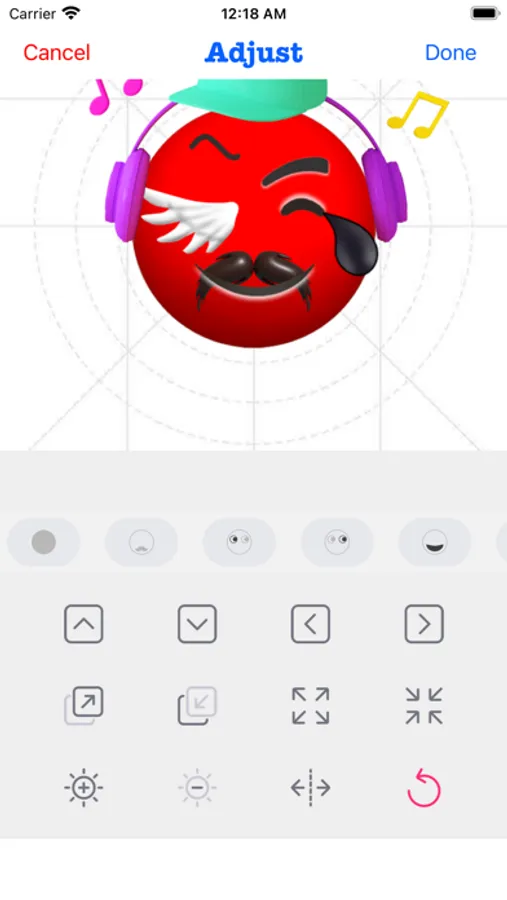 3. Make the sticker look more funny by dragging your finger or zooming and rotating, or you can make subtle adjustments to it through the Adjust module