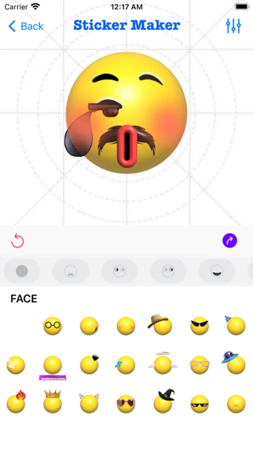 2. Select different emoji options and find the sticker component you want in the sticker list