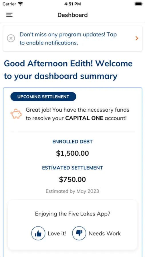 - Receive personal finance tips and inspiration for your debt resolution journey