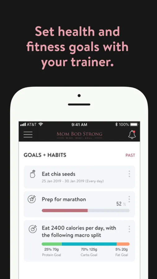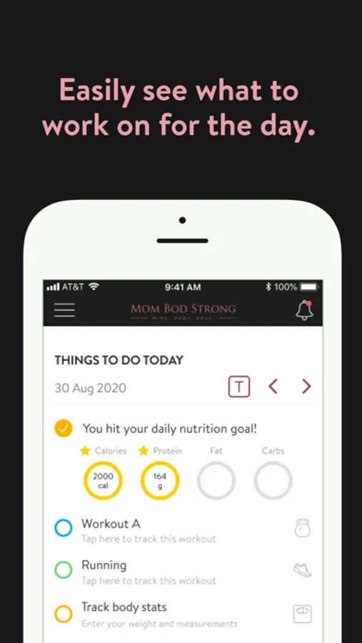 With the Mom Bod Strong App, you will have access to workout programs designed specifically to help you reach your fitness and health goals! You can follow & track your workouts, your nutrition, your lifestyle habits, measurements and results–all with the help of your coach.