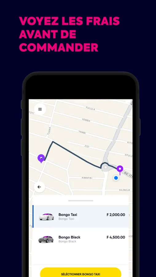 Bongo est une application qui donne la possibilité aux passagers de réserver leur taxi avec sérénité et sans un moindre effort physique, et aux chauffeurs de pouvoir trouver des clients en quelques clics et voyager avec tranquillité.