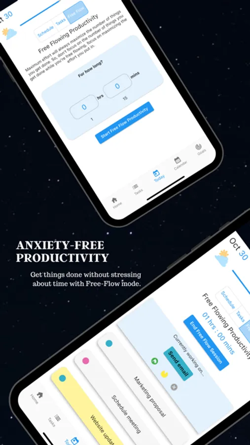 - Free flowing productivity mode: Get things done without stressing about time. Gain better focus in free flow sessions where you're able to focus not on how many things you get done, but on optimizing the amount of effort you put in during a given period of time.