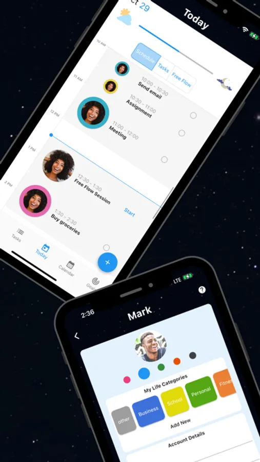 - Life organization: Create personalized life categories to organize all of your tasks and goals.