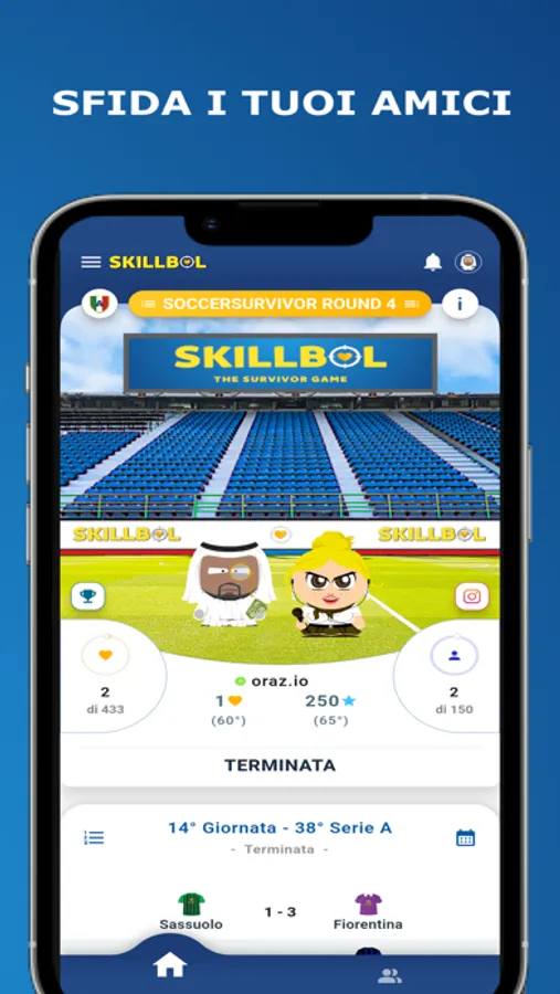 Skillbol - The Survivor game è il gioco ufficiale che ti permette di sfidare i tuoi amici sui principali campionati di calcio italiani.