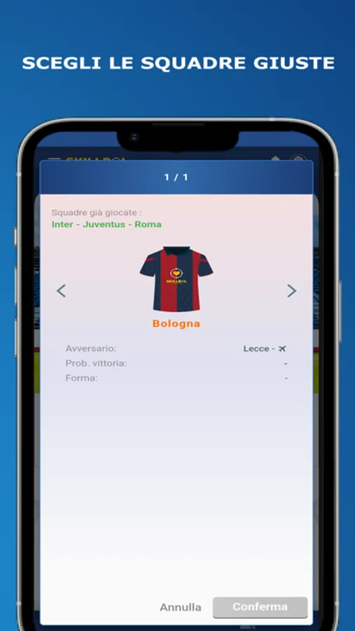 - Attenzione, una volta scelta una squadra, questa non potrà più essere selezionata nelle giornate successive.