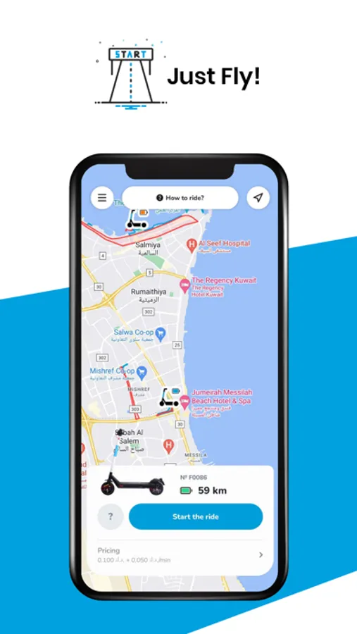 E-fly is Kuwait’s first smart electric vehicle-sharing application. Introducing an affordable, carbon-free 5G micromobility in the Kuwaiti market.