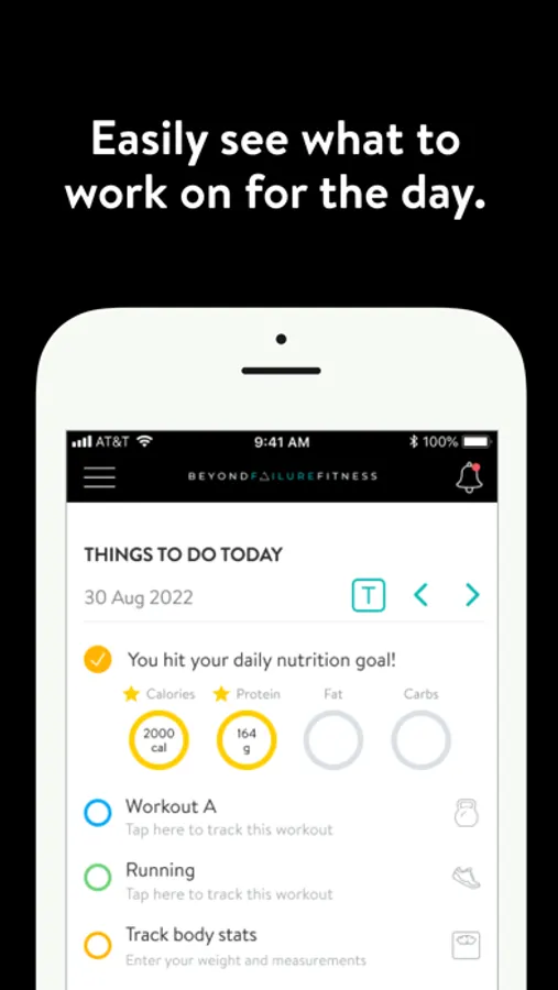 With the Beyond Failure Fitness App, you will have access to workout programs designed specifically to help you reach your health and fitness goals! You can follow & track your workouts, nutrition, your lifestyle habits, measurements, and results–all with the help of your coaches and support of your team.