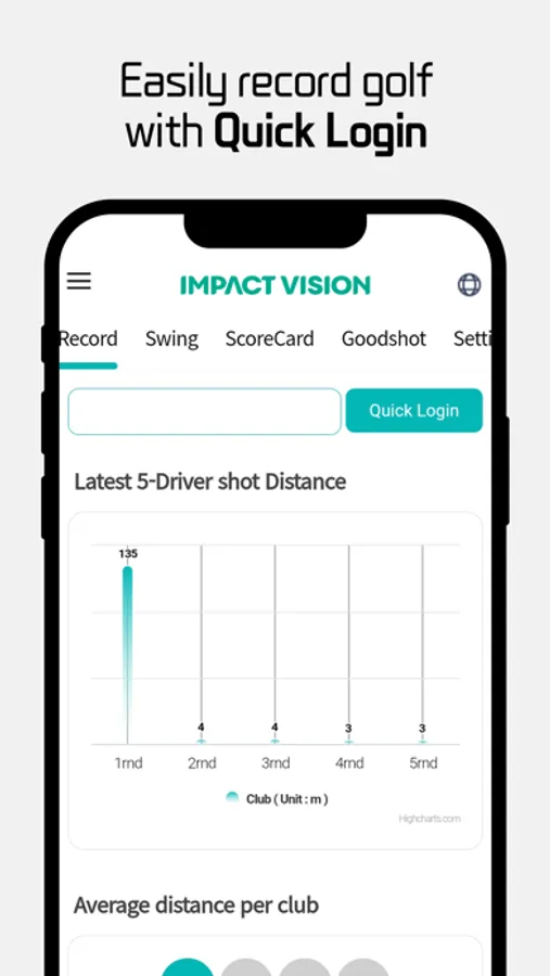 ■ Record : Quick Login, Latest 5-Driver Shot Distance, Average distance per club, Practice History by Date.