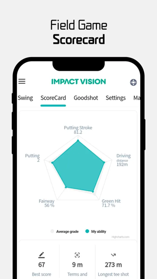 ■ Scorecard : Record the Driving Distance, Green hit, Fairway, Putting, Putting Storke graph. You can record the screen golf round score.