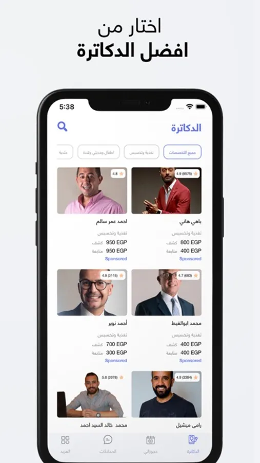 ١- اختار من اكتر من ١٠٠٠ دكتور في ١١ تخصص طبي