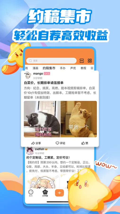 还能与绘画大触、番剧达人、小说金手指、游戏发烧友等顶尖达人零距离接触~