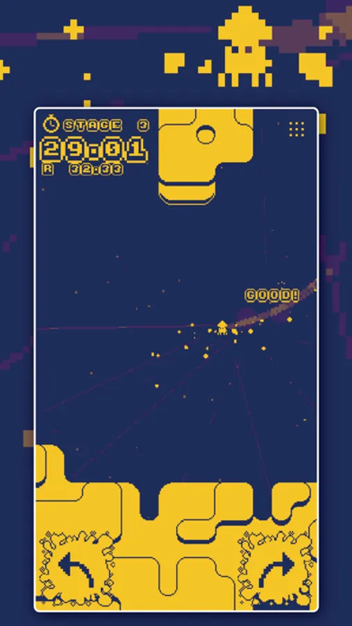 You can enjoy the thrill of sliding through the corners and hot time attacks with a super simple and retro game feeling.