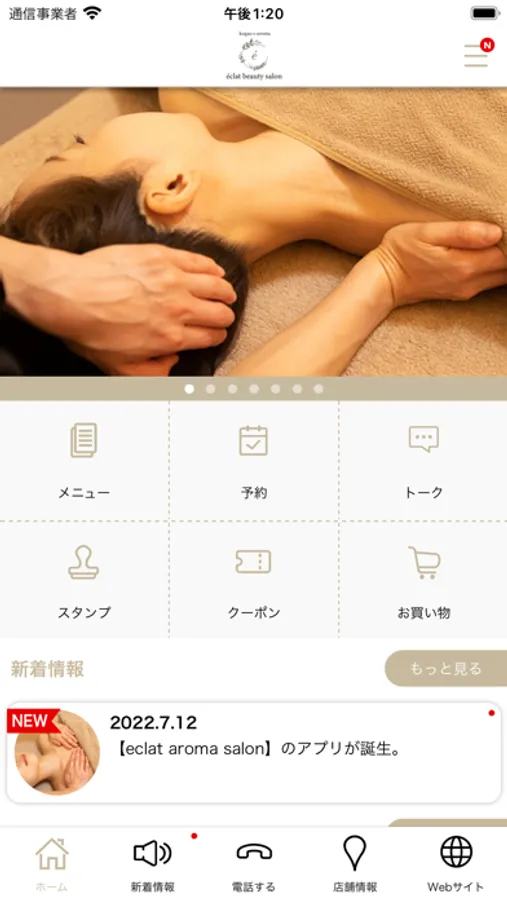 【eclat aroma salon】の公式アプリが登場。アプリを通して【eclat aroma salon】の新着情報やお得な情報をリアルタイムで受け取ることができます。また、いつでもお手元のスマートフォンから、メニューやご希望のお時間帯のチェック・ご予約などが可能です。アプリをインストールしていただくことにより【eclat aroma salon】を、より便利に身近にご利用していただけます。
