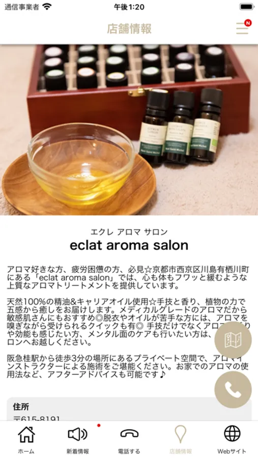 店舗のマップが表示され、地図アプリとも連携しているので、初めてのご来店の時も簡単に見つけることができます。