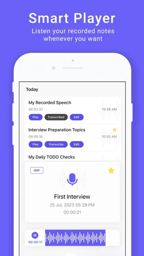 If you are looking for: voice memos, voice recorder, sound recorder, audio recorder, voice notes, record audio, transcription service, audio to text, text to audio, text reader, best dictation, transcribe text, speech to text, voice recognition, audio recording, sound recording, text to pdf, create pdf from text, daily notes, private diary, audio journal, meeting recorder, voice notes transcribe service, records audio and similar to many more then you might be at right place.