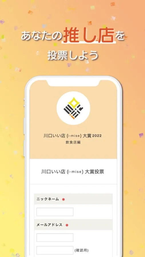 市内にある店舗の中から、わたしだけが知っている個性的なお店や、誰かに教えたいわたしの自慢のお店などを“推し店”として、投票してください。