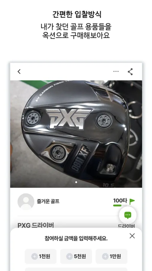 매일 중고, 신상 골프채, 골프용품이 판매 등록되며, 판매자와 구매자간 실시간 채팅을 통하여 상품 상세 문의 및 거래 협의가 가능합니다.