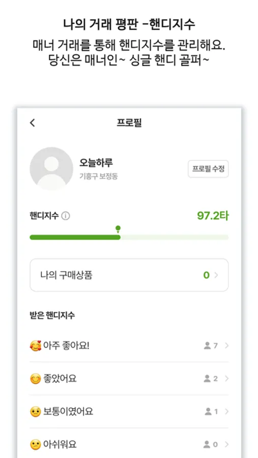 매너지수 입니다. 매너 거래를 통해 핸디지수가 내려 간다면 더 즐겁게 옥션 거래를 할 수 있습니다.