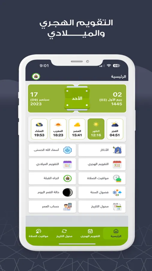 تطبيق التقويم الهجري والميلادي حسب تقويم ام القرى مع الكثير من المميزات: