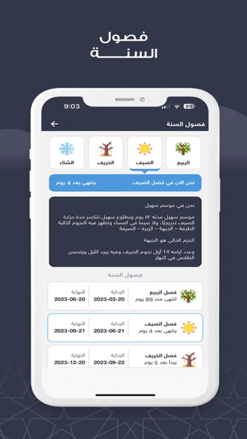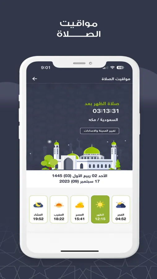 عرض المناسبات الدينية مع عداد للأيام المتبقية.