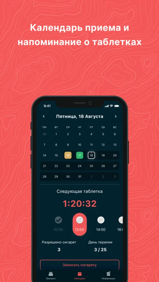 Мы создали приложение ТАБАКЕТТЕ в помощь людям, желающим бросить курить. Ваша терапия будет длиться 25 дней, за которые вы полностью откажетесь от курения. Мы очень хорошо знаем, каково это – бросать курить. Поэтому в приложении у вас есть инструменты дополнительной мотивации, такие как